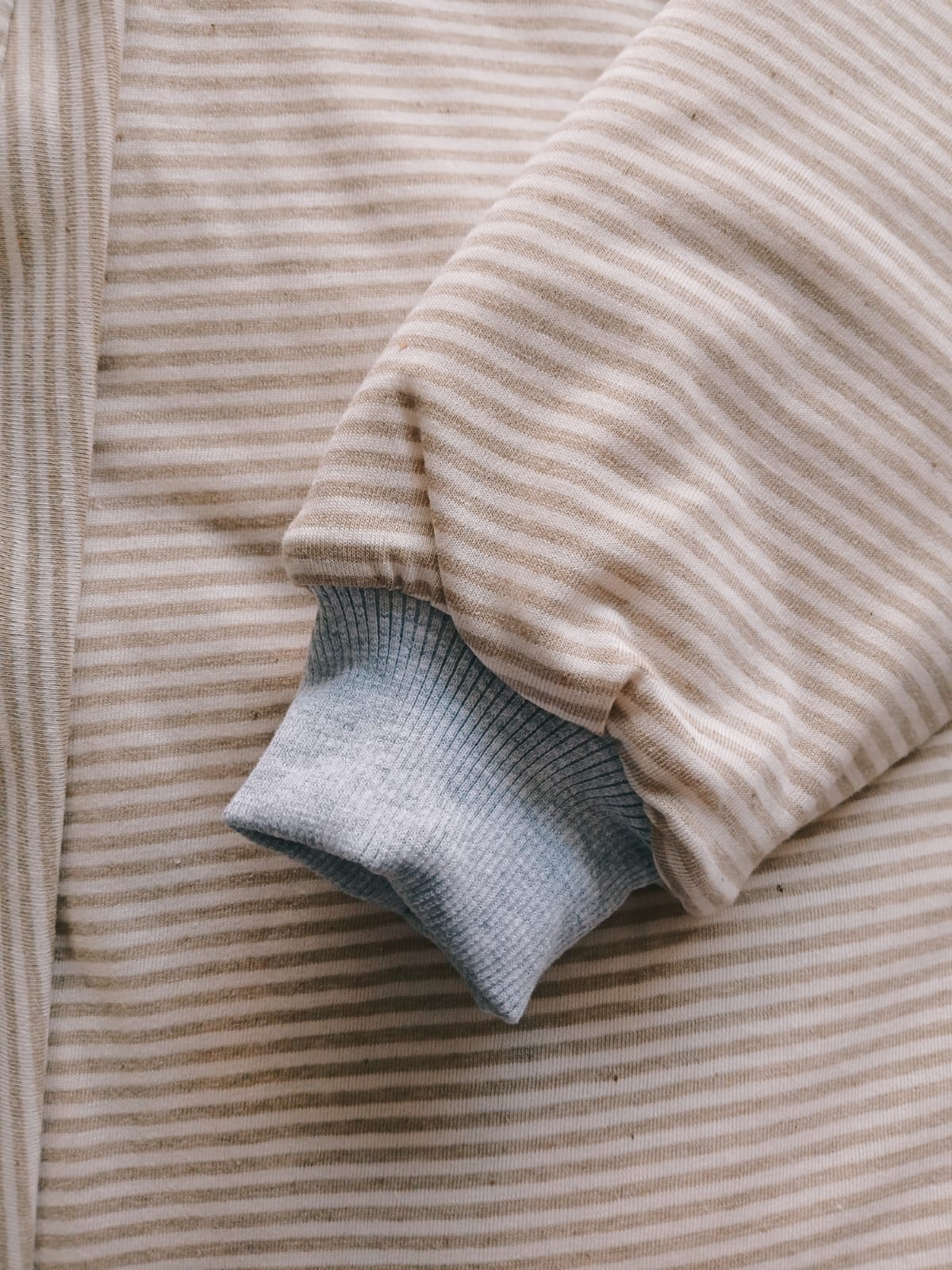 Éste saquito fue confeccionado con una capa exterior de algodón peruano 100% orgánico.
